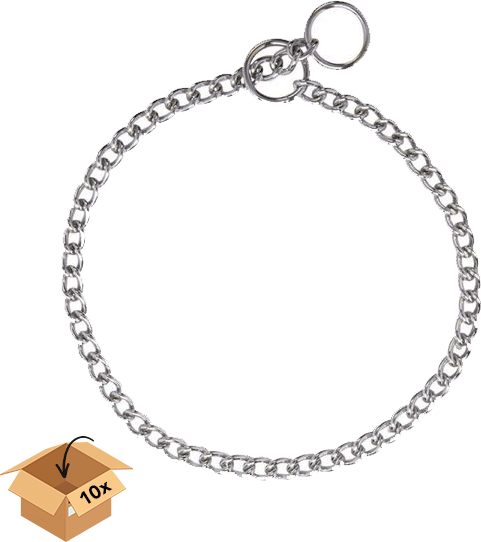 Bekijk product bij K9shop.nl — bestel vandaag nog en ontvang de Slipketting kleine schakel – Verchroomd – Set van 10 stuks snel thuis.
