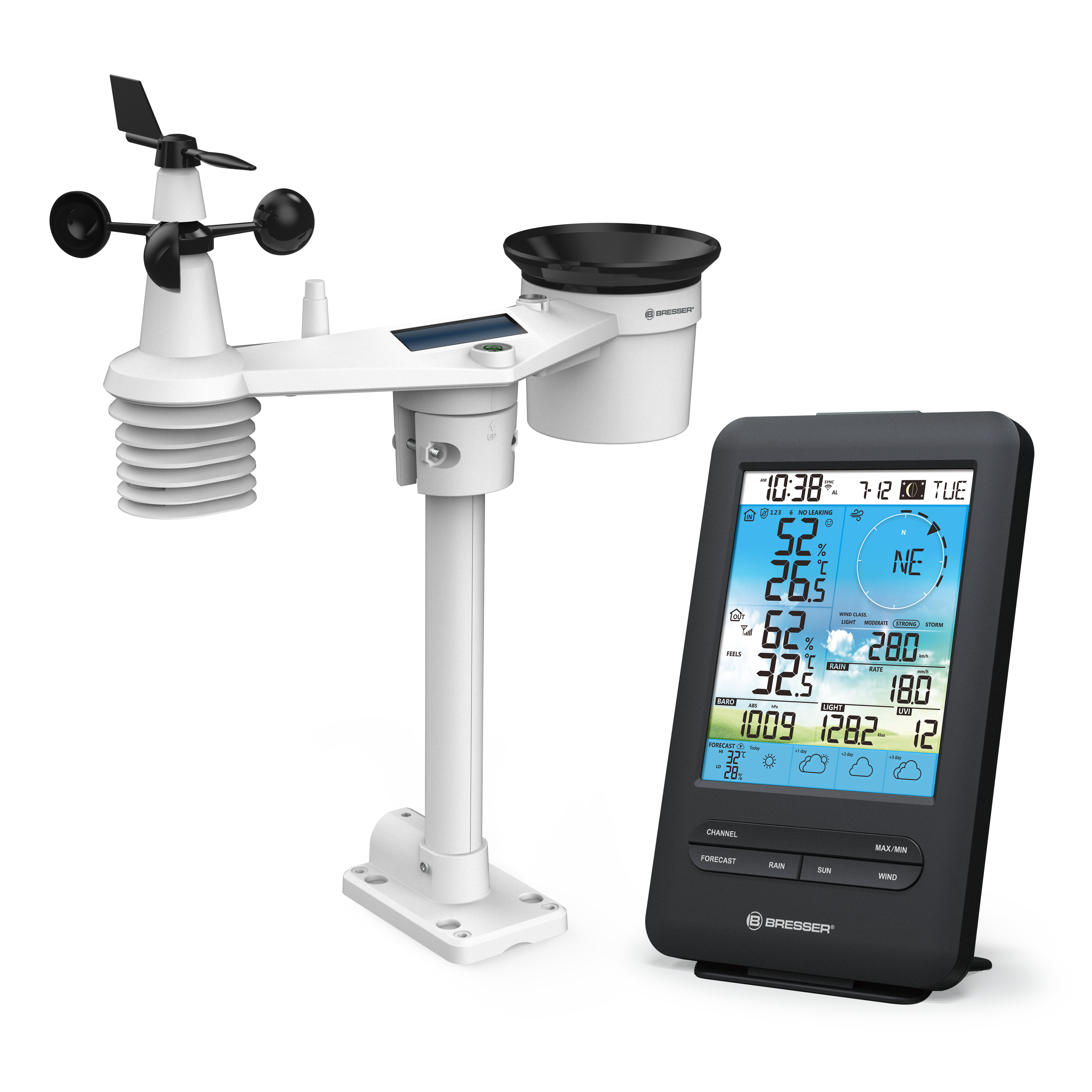 Altijd betrouwbaar op het weer anticiperen met het BRESSER 4-daags 4CAST WLAN-weerstation met 7-in-1 sensor.