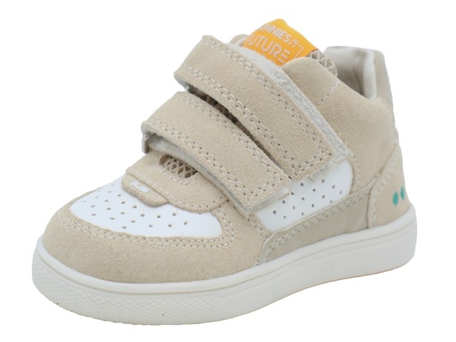 Bunnies Jr. stoere en comfortabele jongens sneaker. Deze klittenbandschoen van Bunnies Jr. heeft als modelnaam Luca Louw en het artikelnummer is 226217-403. De kleur is nougat oftewel beige gecombineerd met wit in het suede in combinatie met leer. De schoen is verstelbaar middels twee verschillende klittenbanden. De voering is van leer met een leder uitneembaar voetbed.