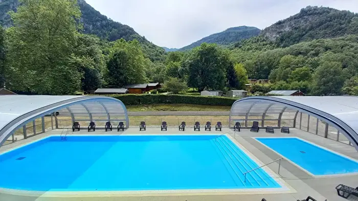 Camping in Vicdessos, Midi-Pyrénées in Frankrijk.