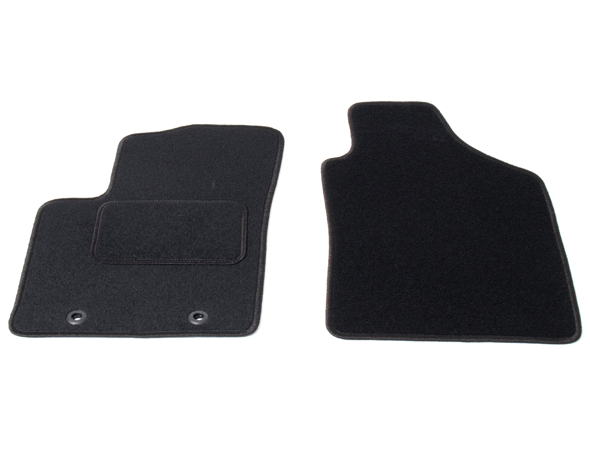 Automatten voorzijde zwart stof geschikt voor Fiat 500 2007-2012 (pre facelift model). Voor de modellen met twee bevestingspunten in de bestuurdersmat. Op maat, dus pasklaar.