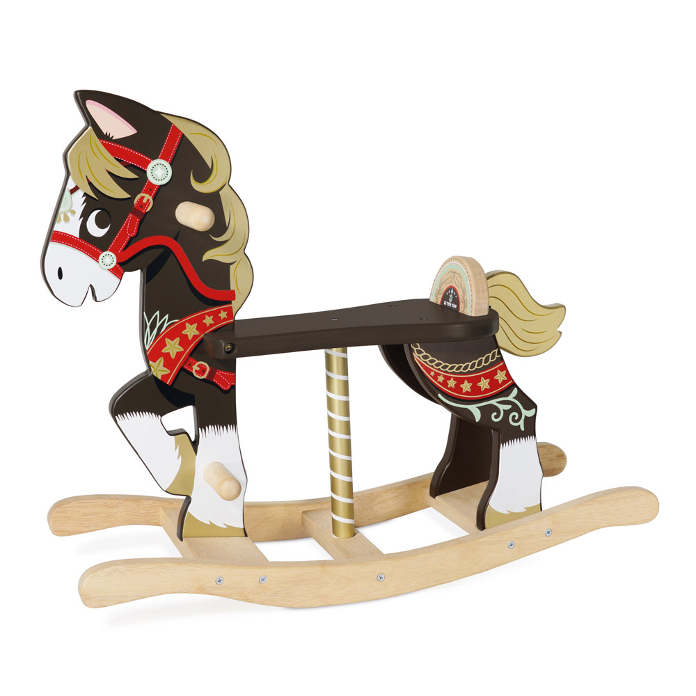 Hobbelpaard Carrousel – Le Toy Van Avonturen wachten op je! Waan je op een magische kermis met dit schitterende draaimolen-paardje. Het prachtig gedetailleerde houten kunstwerk is afgewerkt met gouden accenten, met gebruik van kindveilige verf, voor een luxe uitstraling. Net als in een echte paardenmolen. Dit speelgoed is een echte showstopper en een bijzonder kraamcadeau of een onvergetelijk Kerst- of Sinterklaascadeau. Helpt spelenderwijs de mobiliteit en balans te verbeteren. Het milieuvriendelijke speelgoed van Le Toy Van is liefdevol gemaakt door bekwame vakmensen en gemaakt van duurzame materialen, ethisch geproduceerd om te voldoen aan de hoogste veiligheidsnormen. Specificaties houten hobbelpaard: Afmetingen: 65 x 23,5 x 54,5 cm Aanbevolen voor kinderen van 12+ maanden Genderneutraal ontwerp Gemaakt van hout uit duurzaam beheerde bossen Kindveilig speelgoed – gedecoreerd met niet-giftige verf en getest volgens de hoogste veiligheidsnormen
