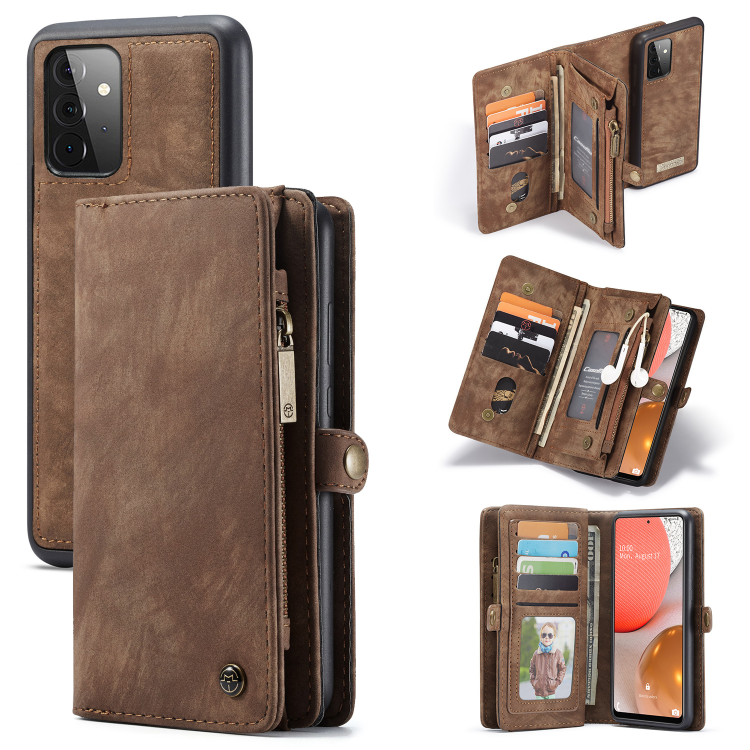 Deze vintage en ideale 2 in 1 portemonnee hoes van het merk Caseme, is speciaal gemaakt voor de Samsung Galaxy A72. Wanneer u kiest voor een Caseme hoes, kiest u voor een goed afgewerkte hoes met oog voor detail en een vintage look. De complete hoes valt groot uit, maar de case waar u de mobiel in doet valt klein uit en is makkelijk mee te nemen.
