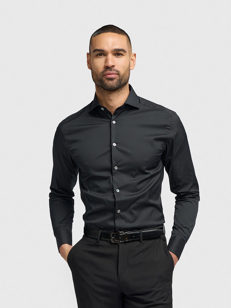Ontdek het Monaco overhemd in zwart. Slim fit, gemaakt van 70% Tencel en 30% katoen. Stijlvol, comfortabel en veelzijdig voor zowel formele als casual looks. | Het Monaco overhemd in zwart is vervaard Meer info →