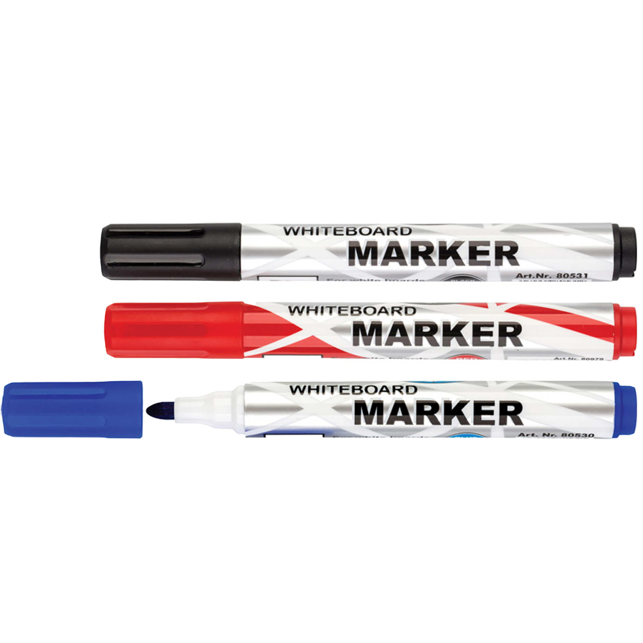 Whiteboard marker / stift in de kleuren rood, blauw en zwart. Met deze whiteboardmarkers schrijf je moeiteloos op elk whiteboard en wis je het net zo makkelijk weer weg. De heldere, kleuren inkt droge Meer info →