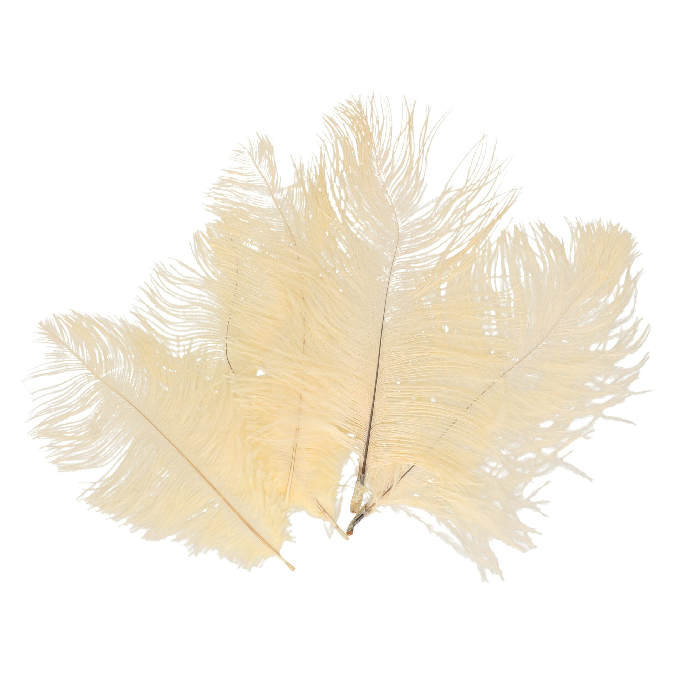 Struisvogelveren/sierveren 10x creme wit 20-25 cm decoratie/hobbymateriaal. Mooie creme witte sierveertjes, te gebruiken voor het knutselen of juist ter decoratie in een mooie vaas. Inhoud per zakje: 5 stuks. Formaat: ca. 25 cm (inclusief steel). Materiaal: struisvogelveren.
