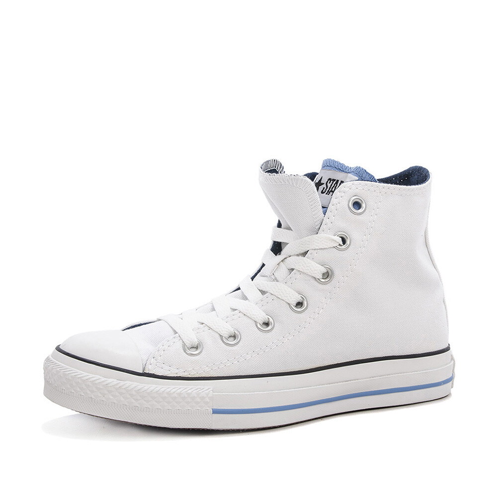 Hoge Converse All Star Chuck Taylor sneakers. Dit tijdloze model uit de Converse collectie is uitgevoerd in de trendkleur wit, en voorzien van een speciale dubbele tong in de kleur lichtblauw. Deze ac Meer info →