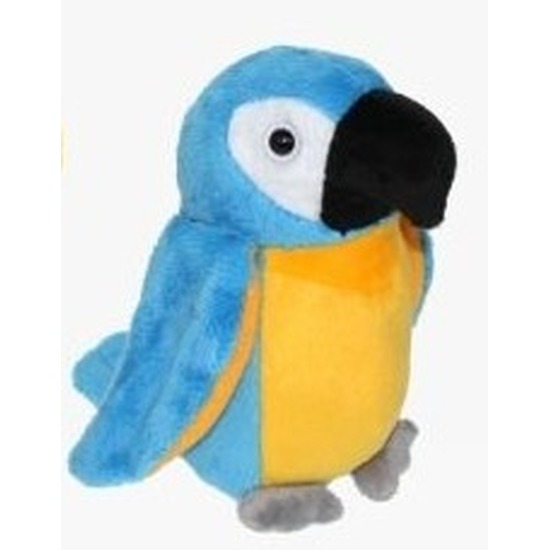 Pluche knuffel papegaai – blauw/gele ara – 24 cm. Breng wat exotische flair in huis met deze schattige blauwe ara papegaai knuffel! Deze pluche knuffel van ongeveer 15 cm heeft vrolijke blauwe en gele kleuren en is voorzien van glanzende kraalogen voor een speelse uitstraling. Perfect voor kinderen die houden van tropische dieren, deze papegaai is niet alleen een knuffel, maar ook een leuk speelgoedvriend voor eindeloos speelplezier! Een geweldige aanvulling op elke knuffelcollectie.