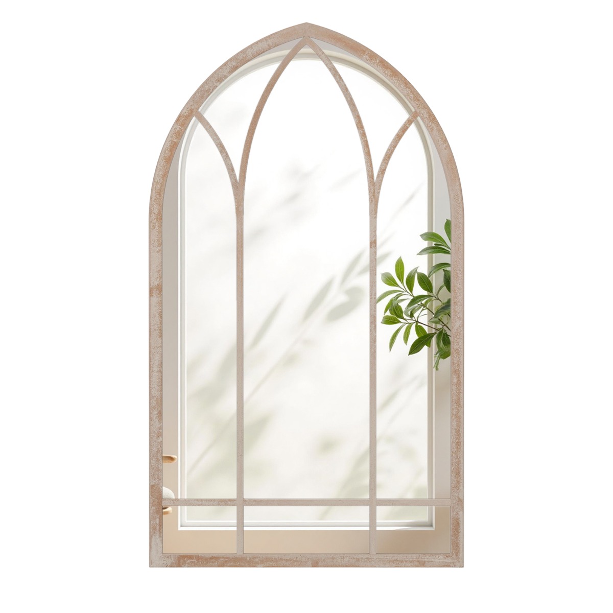 Wat is de Farmhouse Raamkozijnspiegel Gebogen Wandspiegel met Metalen Frame Decoratieve Spiegel voor Binnen en Buiten in de Woonkamer Hal Open Haard Tuin 83 x 48 cm?