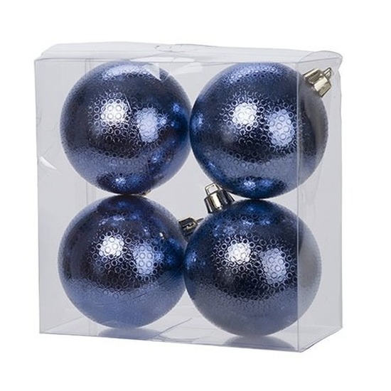 4x Donkerblauwe cirkel motief kerstballen 8 cm kunststof — Cosy & Trendy