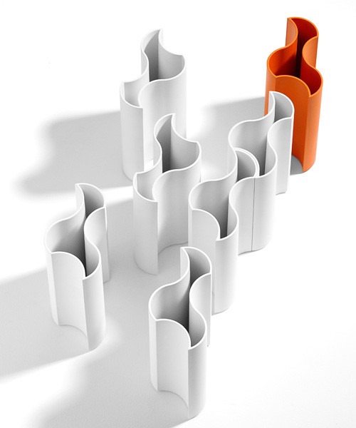Deze unieke vaas met zijn artistiek grillige vorm kunt u in willekeurige patronen tegen elkaar aan zetten. Deze vazen maken het mogelijk om ongekend bijzondere bloemarrangementen te maken. Als u iets aparts zoekt is dit het.