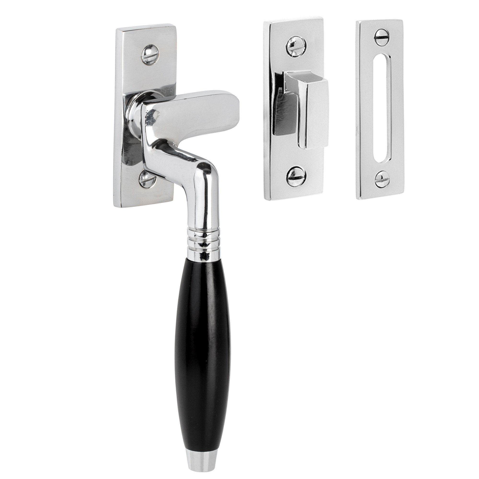 De Oude Deurklink Raamsluiting Klassiek glanzend nikkel links — De Oude Deurklink