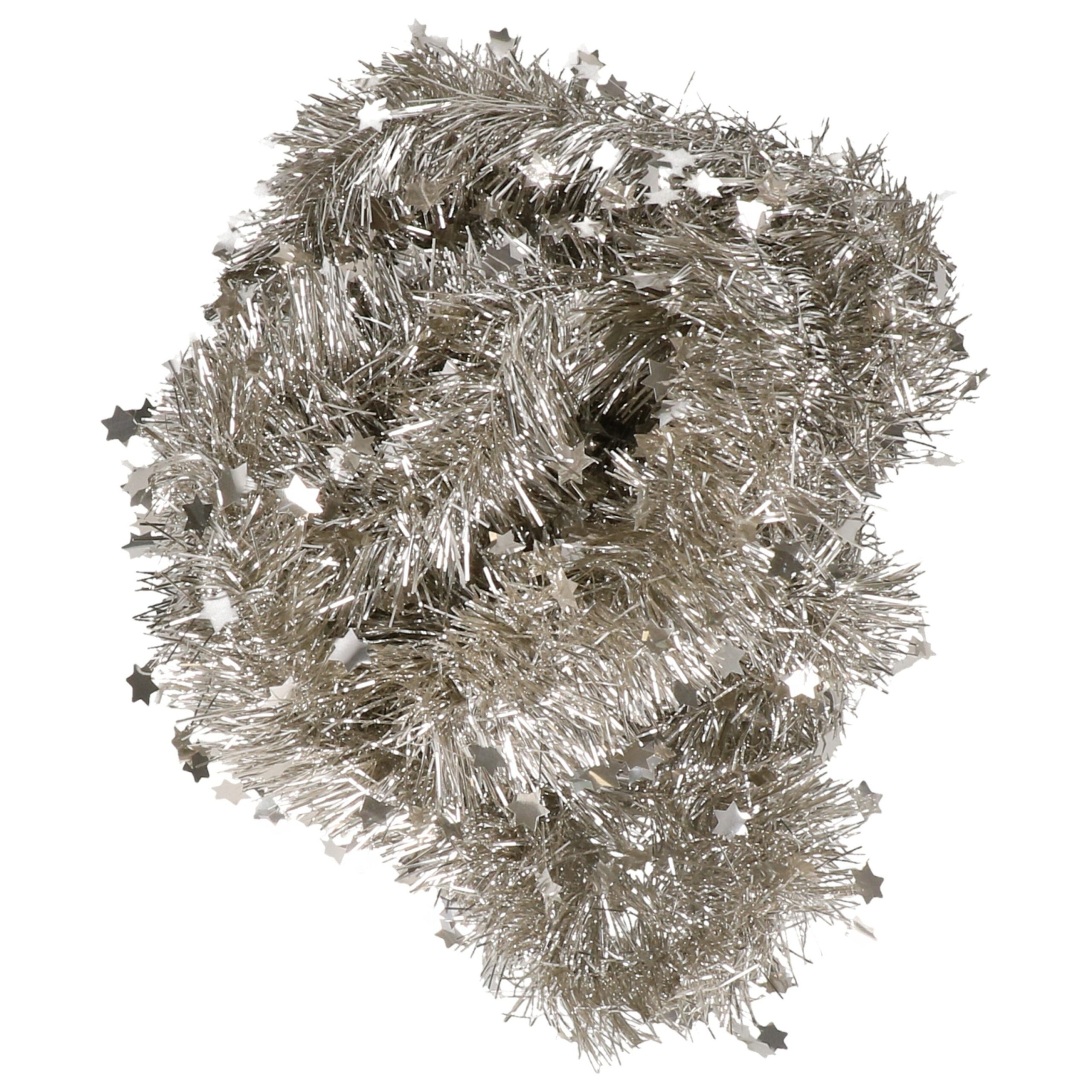 3x Champagne sterren kerstslingers kerstboom versiering 10 x 270 cm. Glanzende lametta folie guirlande kerstversiering met sterretjes in de kleur champagne. Kerstslingers versieringen/decoratie voor het optuigen van uw kerstboom. Materiaal: folie kunststof/plastic. Formaat diameter: 10 cm, lengte: 270 cm. Kleur: champagne. Serie: Christmas Pearl. U ontvangt 3 stuks.
