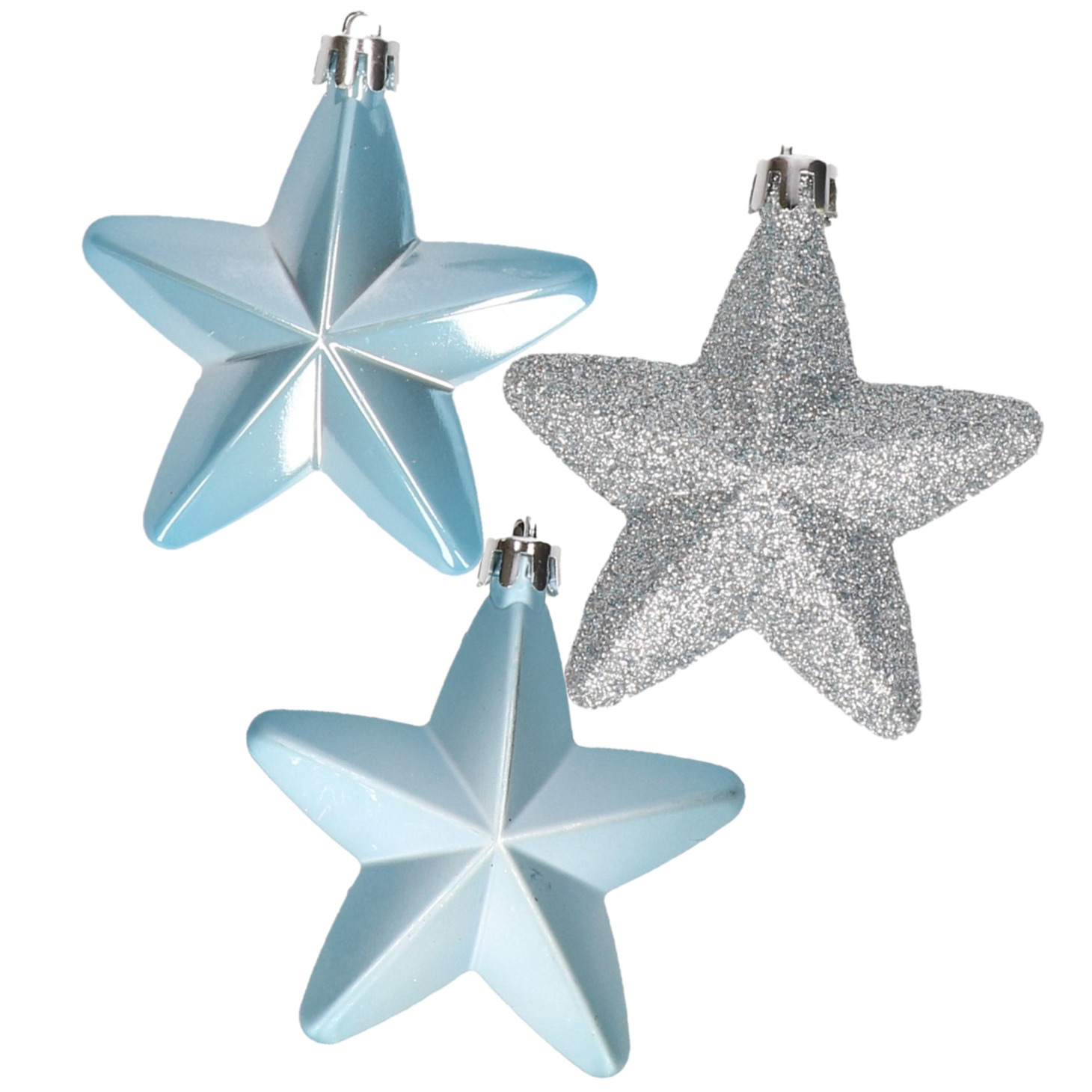 Kerstornamenten kunststof sterren 6x st lichtblauw 7 cm — Decoris