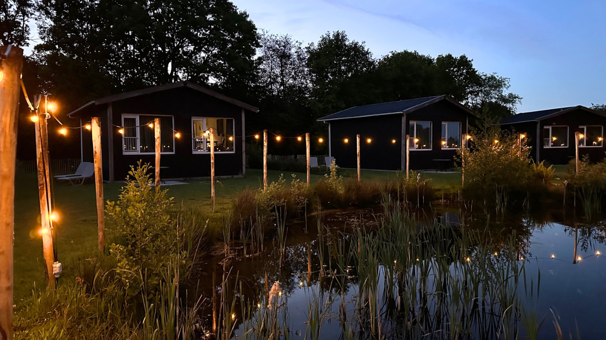 Tiny House voor 2 personen rondom een vijver op park de Kremmer Meer info →