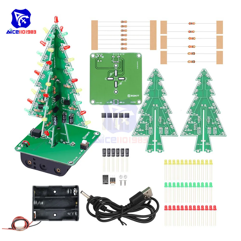 diymore DIY 3D Christmas Tree Soldering Practice Electronic Science Assemble Kit 3 Color/7 Color Flashing LED PCB — Ali Express