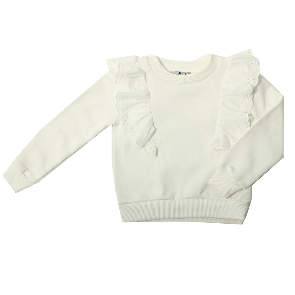 Creme sweater van Dr.kid. Over de trui zit een strook broderie en leuk te combineren met bijv de rokjes van Dr.kid.