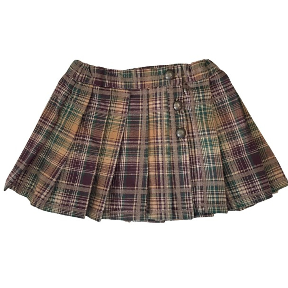 Geruit plooi rokje van Dr.kid. Het rokje sluit aan de voorkant met knoopjes en heeft knoopsgaten elastiek in de taille. Mooie warme winterse kleurtjes. Materiaal 100% katoen.