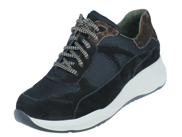 Durea sportieve en comfortabele dames veterschoen. Deze sneaker van Durea heeft als artikelnummer: 6283-608-1162. Met een comfortabel paar sneakers ligt de wereld aan je voeten. Trainers, een kruising tussen een stijlvolle, sportieve schoen en een hardloopschoen, zijn op dit moment de sneaker voor alledag. De voering is gemaakt van ademend en vochtabsorberend materiaal (Dry Maxx), dat ook nog eens fluweel zacht aanvoelt. Tel daar een ongeëvenaarde pasvorm met veel ruimte voor de tenen bij op. De loopzool is extra licht en flexibel door de gebruikte materialen, die door de juiste samenstelling ook zorgen voor stabiliteit en grip. Verder geeft de zool een geweldige demping en door de oplopende neus wikkelt je voet tijdens het lopen als vanzelf af. De kleur is zwart gecombineerd met espresso oftewel bruine accenten in het nubuck leer. De schoen heeft daarnaast natuurlijk een uitneembaar voetbed. De wijdtemaat is K, de schoen is dus geschikt voor normale tot brede voeten.