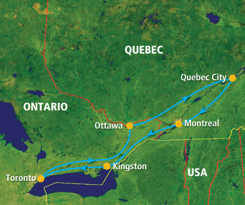 Op deze reis komt u in de stadscentra en de fantastische natuur van de provincies Ontario en Québec. De invloed van de Engelse en Franse cultuur uit vroeger dagen is nog duidelijk aanwezig. Van het kosmopolitische Toronto en het natuurfenomeen van de Niagara-watervallen reist u naar het historische Kingston en de rust van het gebied rond de ‘Thousands Islands’. U ontdekt het ‘joie de vivre’ van Franstalig Montréal en de grootsheid van de St. Lawrence River. U wandelt over kinderhoofdjes door het oude ommuurde centrum van Québec City en bewondert Ottawa, de mooie hoofdstad van Canada.