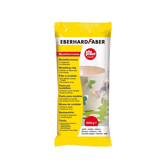 Ontdek de creatieve mogelijkheden van deze witte boetseerklei/gips, perfect voor hobbyisten, kunstenaars en scholen. De verpakking bevat 1 kilo zelfhardende klei die na het vormen vanzelf uithardt aan de lucht ? dus geen oven of verhitting nodig.