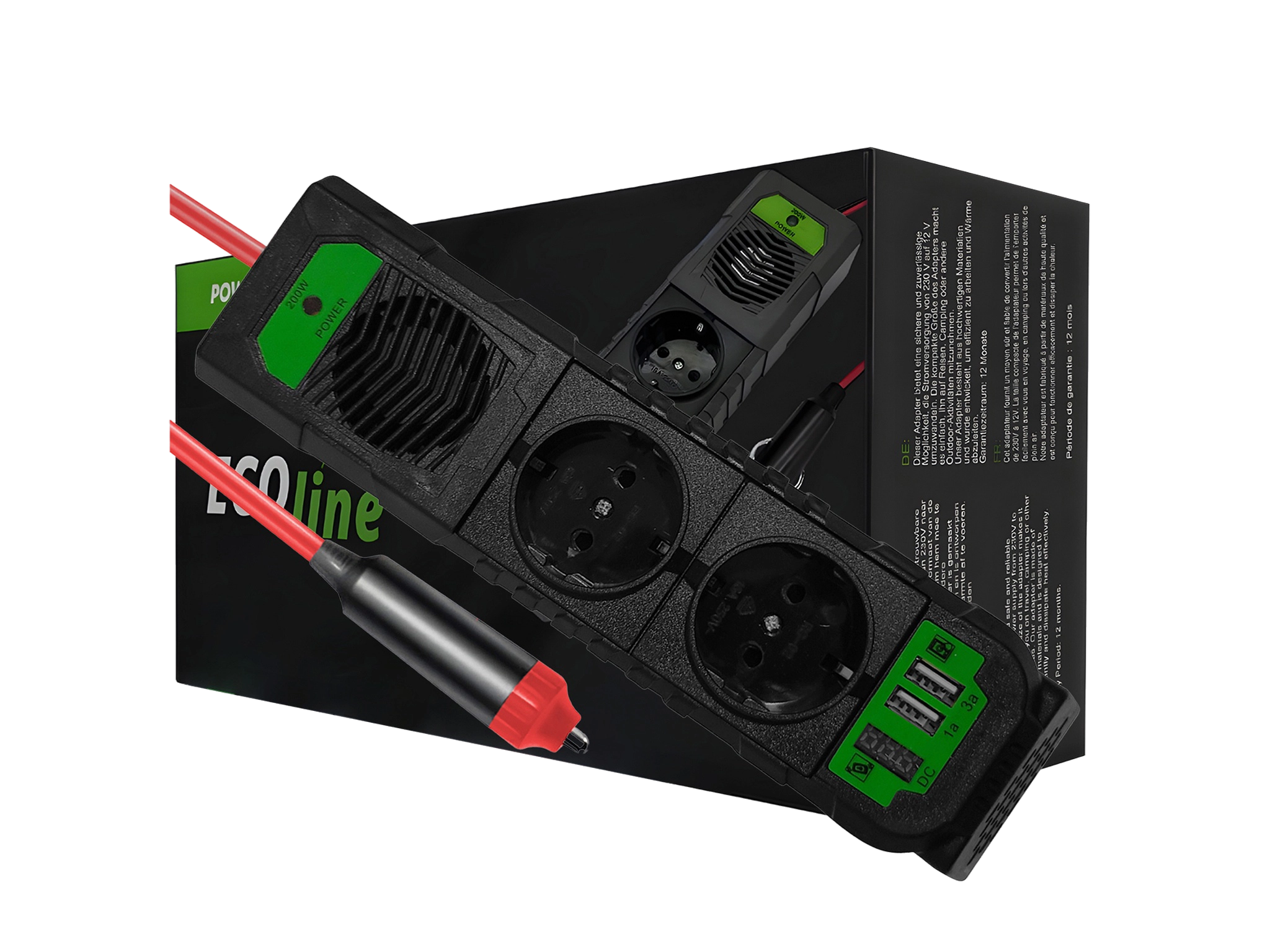 EcoLine car inverter 12V to 220V 230V 200W power strip