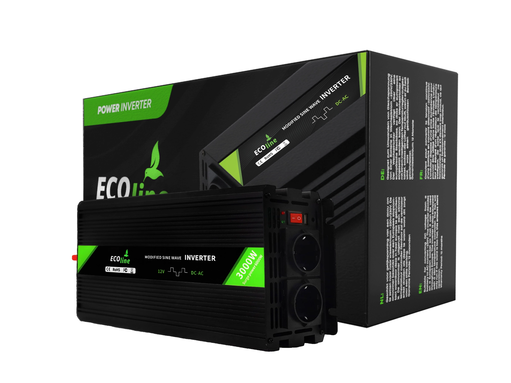 EcoLine – Omvormer 12V Naar 220V/230V – 3000w Vermogen – Gemodificeerde sinus – Spanningomvormer — EcoLine