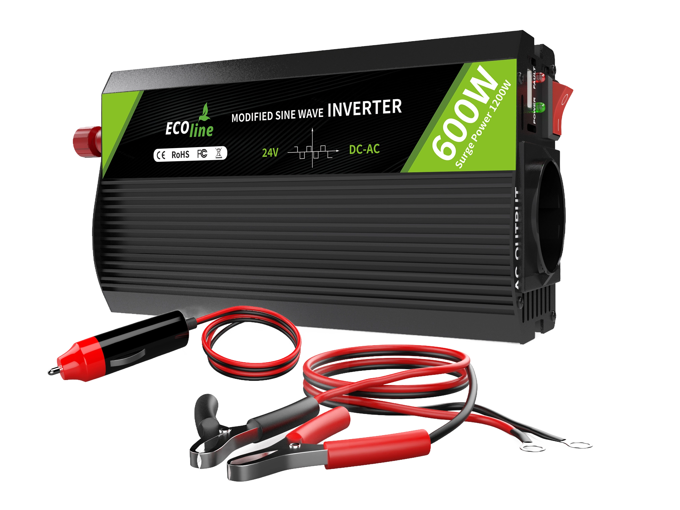 EcoLine – Omvormer 24V Naar 220V/230V sigarettenaansteker – 600w Vermogen 1200w piek – Gemodificeerde Sinus – Spanningomvormer – vrachtwagenlader – stopcontact — EcoLine