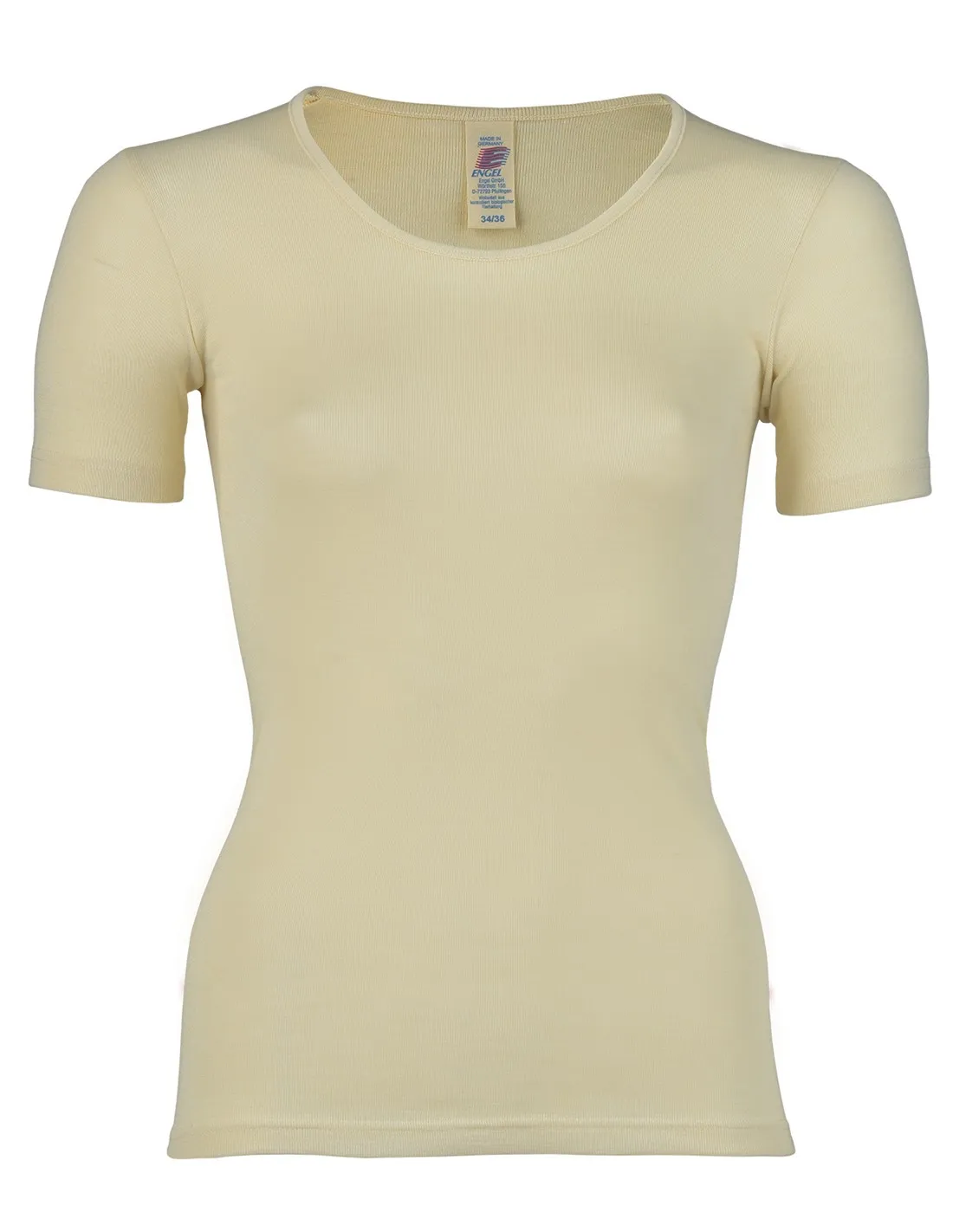 Stel je voor: een heerlijk warm T-Shirt dat zacht aanvoelt als een wolk, je huid laat ademen én er ook nog eens fantastisch uitziet. Geen droom, maar werkelijkheid met ons T-Shirt van zijde en merinowol van Engel Natur! Dit veelzijdige T-Shirt is perfect te dragen als boven- én onder-shirt en is naadloos uitgevoerd voor extra comfort. Ontdek ultiem draaggemak en natuurlijke schoonheid in één perfect kledingstuk.