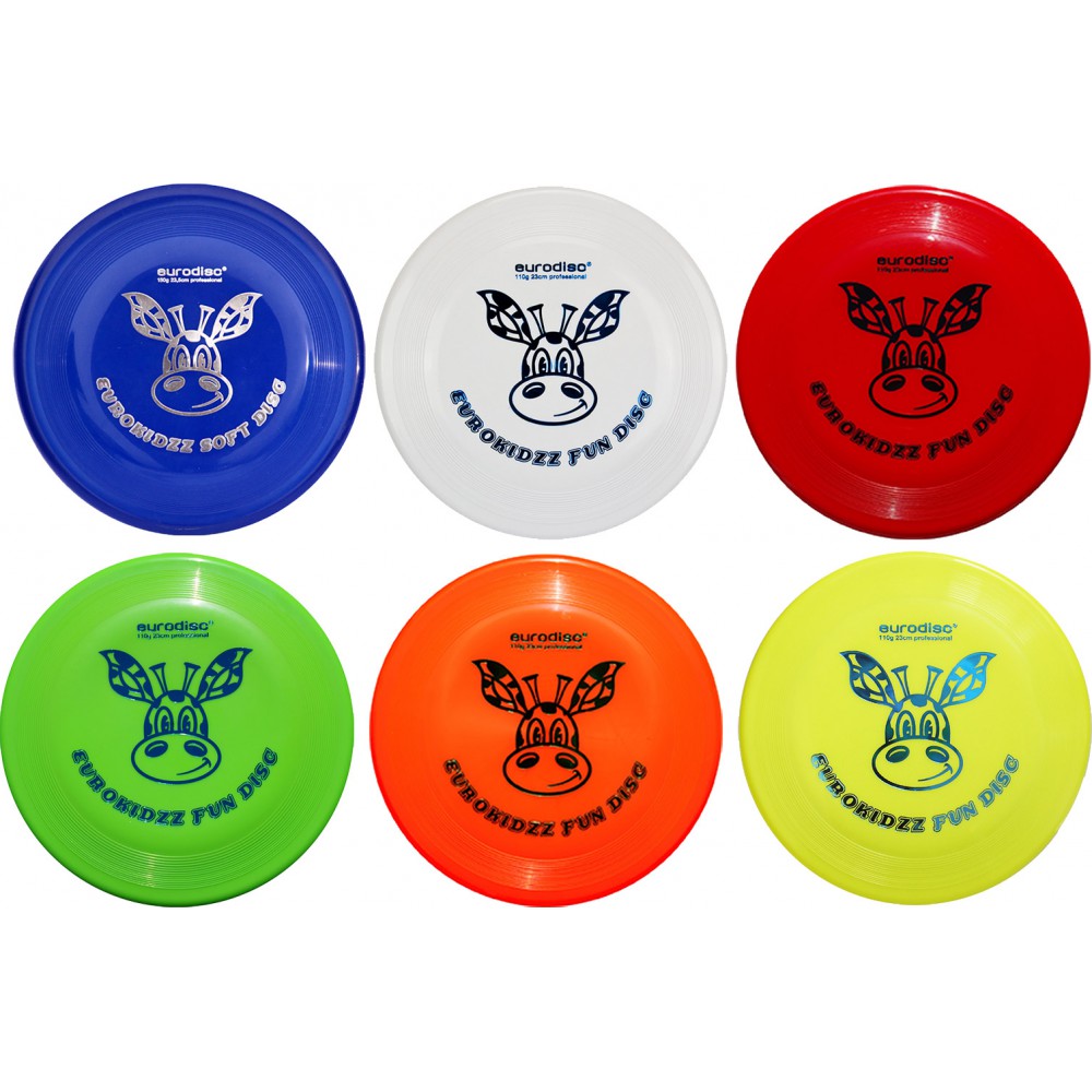 Uitstekende frisbee voor kinderen vanaf 5 jaar. Met de leuke giraffe print en mooie kleuren is dit een superleuke kwalitateits-frisbee. De Eurodisc Kidzz Giraffe is geschikt voor jongere kinderen omdat de grip smaller, de frisbee lichter en kleiner is dan de frisbees voor volwassenen. Ondanks zijn lichtere gewicht en kleinere diameter vliegt deze kinderfrisbee heel stabiel.
