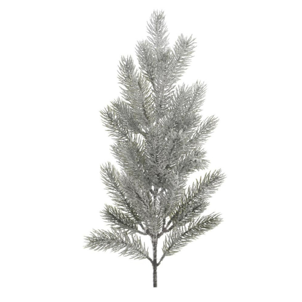 Bekijk product bij Partyshopper.nl — bestel vandaag nog en ontvang de Kunst dennentak – 52 cm – groen – met sneeuw – kerststukjes dennentakken – kerstversiering snel thuis.