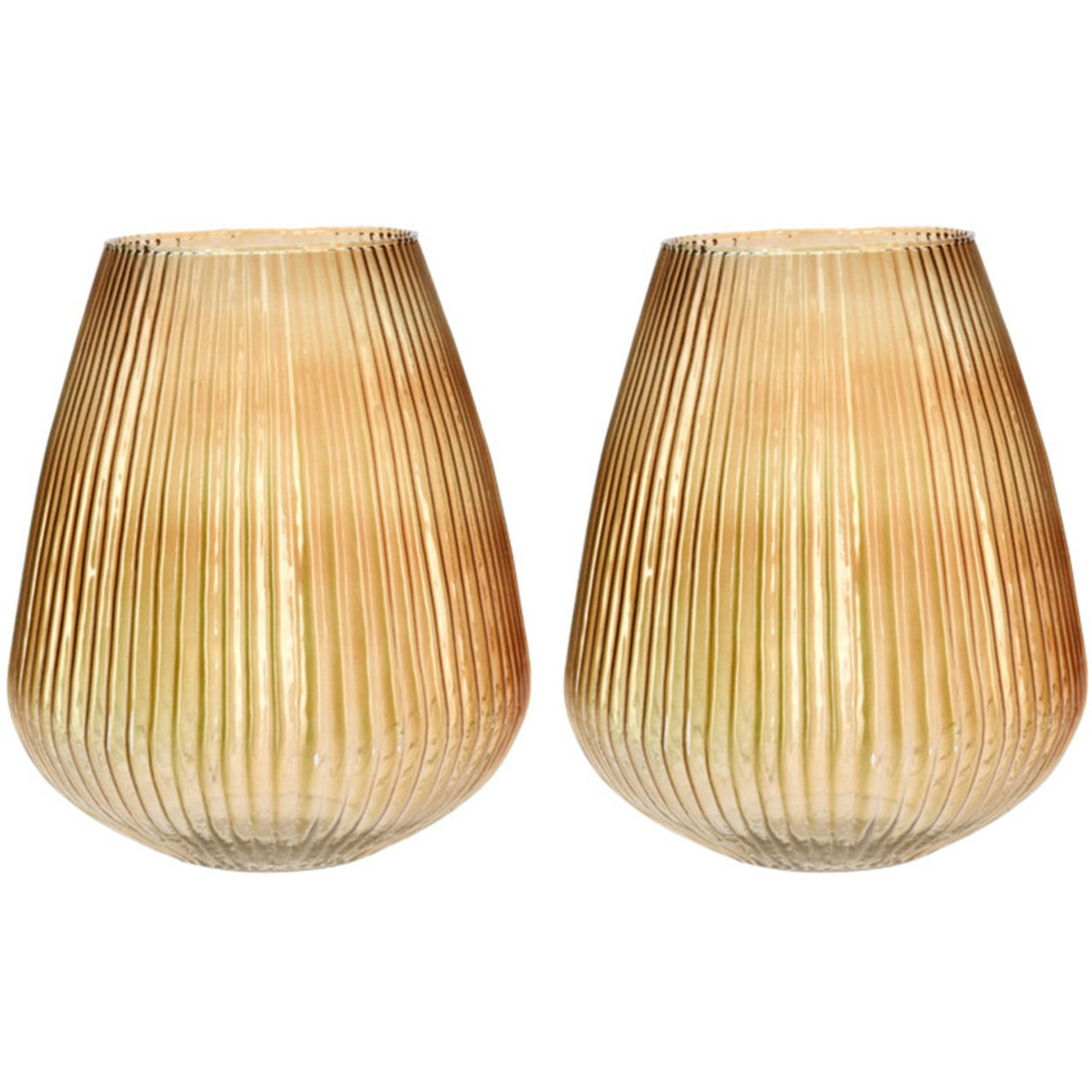 Set van 2x Excellent Houseware glazen vaas / bloemen vazen – roze – 25 x 37 cm – — Excellent Houseware