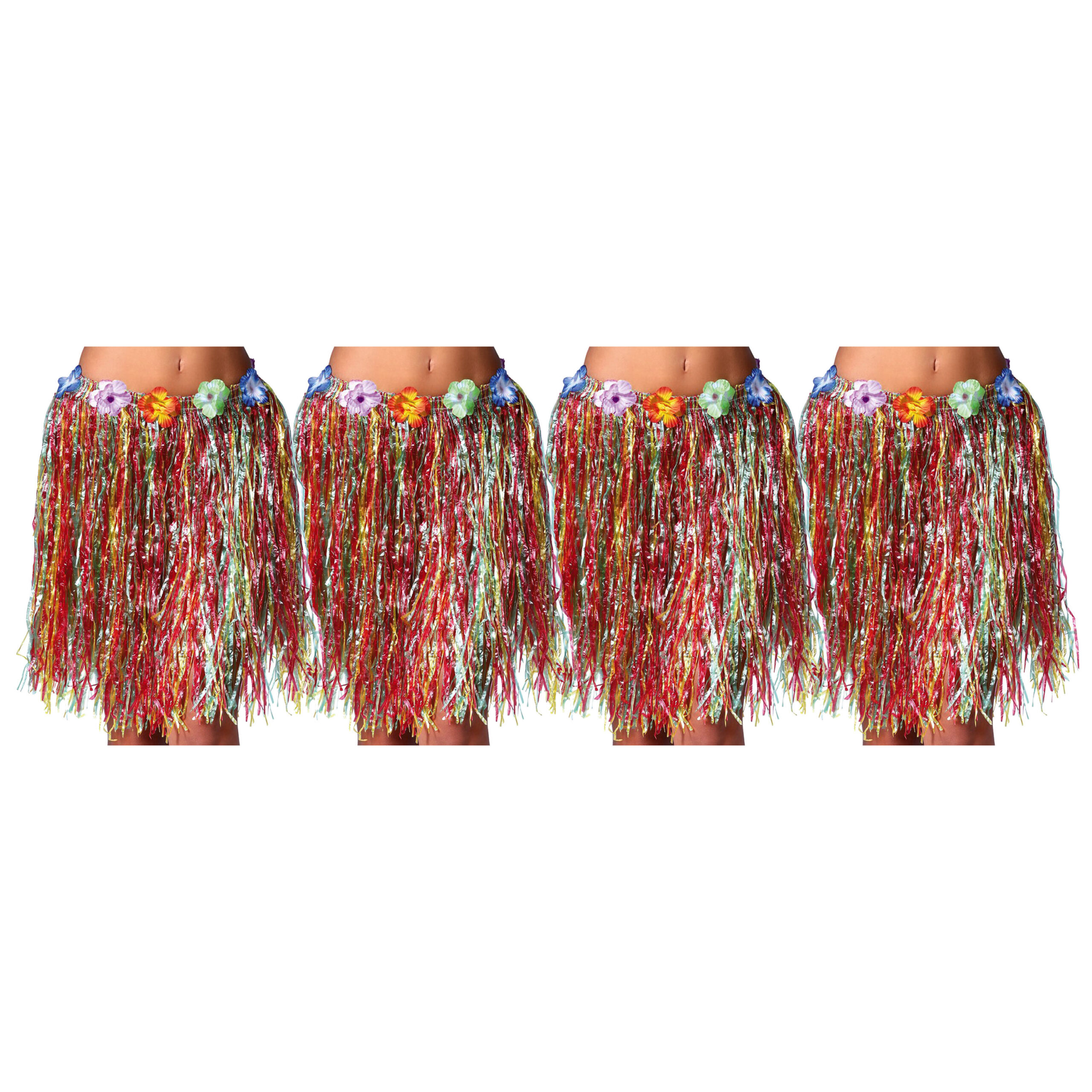 Hawaii verkleed rokje – 4x – voor volwassenen – multicolour – 50 cm – rieten hoela rokje – tropisch — Fiestas Guirca