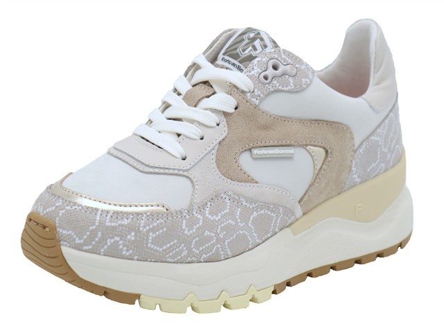 Floris van Bommel hippe en trendy dames sneaker. Deze veterschoen van Floris van Bommel heeft als modelnaam Treni 02.00 en het artikelnummer is: 10164-34-01. De kleur is taupe oftewel beige met taupe en offwhite gecombineerd met subtiele botergele accenten. Het materiaal is een combinatie van suede met nubuck leer. De zool is een lichtgewicht runnerzool. De voering is van leer met een uitneembaar voetbed.