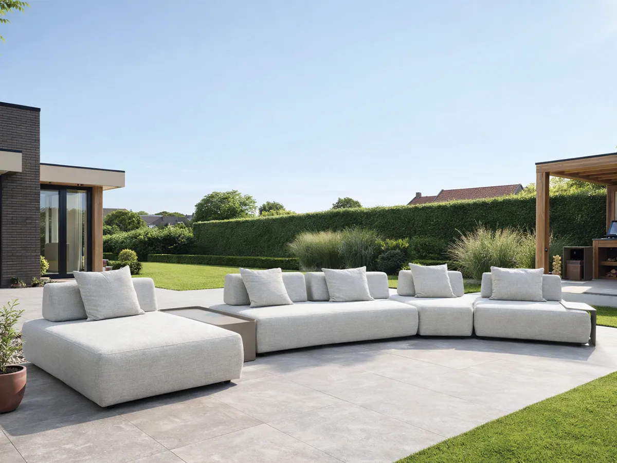 Introductie Fonteyn Lyra LoungesetHet Fonteyn Lyra Loungeset van Fonteyn transformeert jouw buitenruimte tot een luxueus relaxgebied waar comfort en stijl harmonieus samenkomen. Deze elegante modulaire loungeset biedt de perfecte combinatie van flexibiliteit en design, waardoor je altijd de ideale opstelling hebt voor elke gelegenheid. Het lichtgrijze design past moeiteloos bij verschillende tuinstijlen en creëert een verfijnde sfeer in jouw tuin.nnJouw persoonlijke stijlstatementDeze loungeset straalt pure elegantie en moderne verfijning uit die jouw persoonlijkheid perfect weergeeft. De neutrale lichtgrijze tint zorgt voor een tijdloze uitstraling die harmonieus integreert met elke tuininrichting, terwijl de strakke lijnen en royale proporties een gevoel van luxe en exclusiviteit creëren. Het design toont jouw voorliefde voor kwaliteit en goede smaak.nnModulaire flexibiliteit voor elke situatieDankzij het modulaire systeem kun je verschillende elementen combineren en precies de opstelling creëren die bij jouw ruimte past. Of je kiest voor een hoekopstelling, rechte bank of U-vorm, de onderdelen sluiten naadloos op elkaar aan voor een samenhangende look. De waterafstotende kussens maken de set perfect geschikt voor buitengebruik en zorgen voor langdurig comfort tijdens elke weersomstandigheid.nnEconomisch slimme investeringDoor te kiezen voor dit modulaire systeem investeer je in een langdurige oplossing die zich aanpast aan veranderende behoeften en ruimtes. Het modulaire ontwerp betekent dat je de configuratie altijd kunt wijzigen voor verschillende gelegenheden, waardoor je optimaal rendement haalt uit jouw investering. De duurzame materialen en tijdloze design zorgen ervoor dat deze loungeset jarenlang actueel blijft en jouw buitenruimte verfraait.n