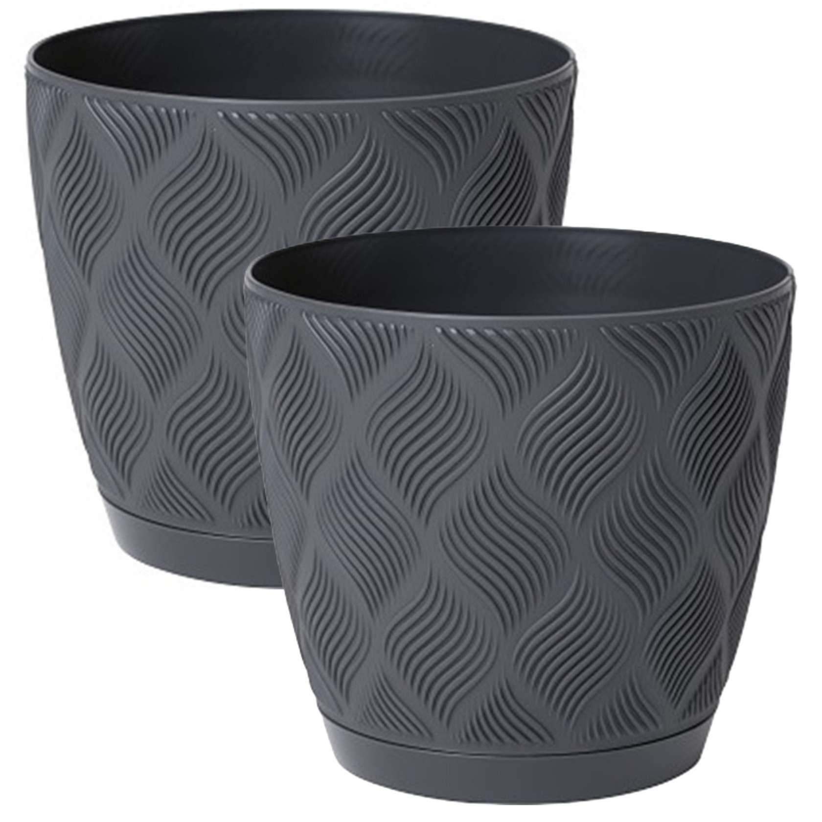 Form Plastic Plantenpot/bloempot New Age – 2x – kunststof – antraciet – D27 x H24 cm – met schotel — Form Plastic