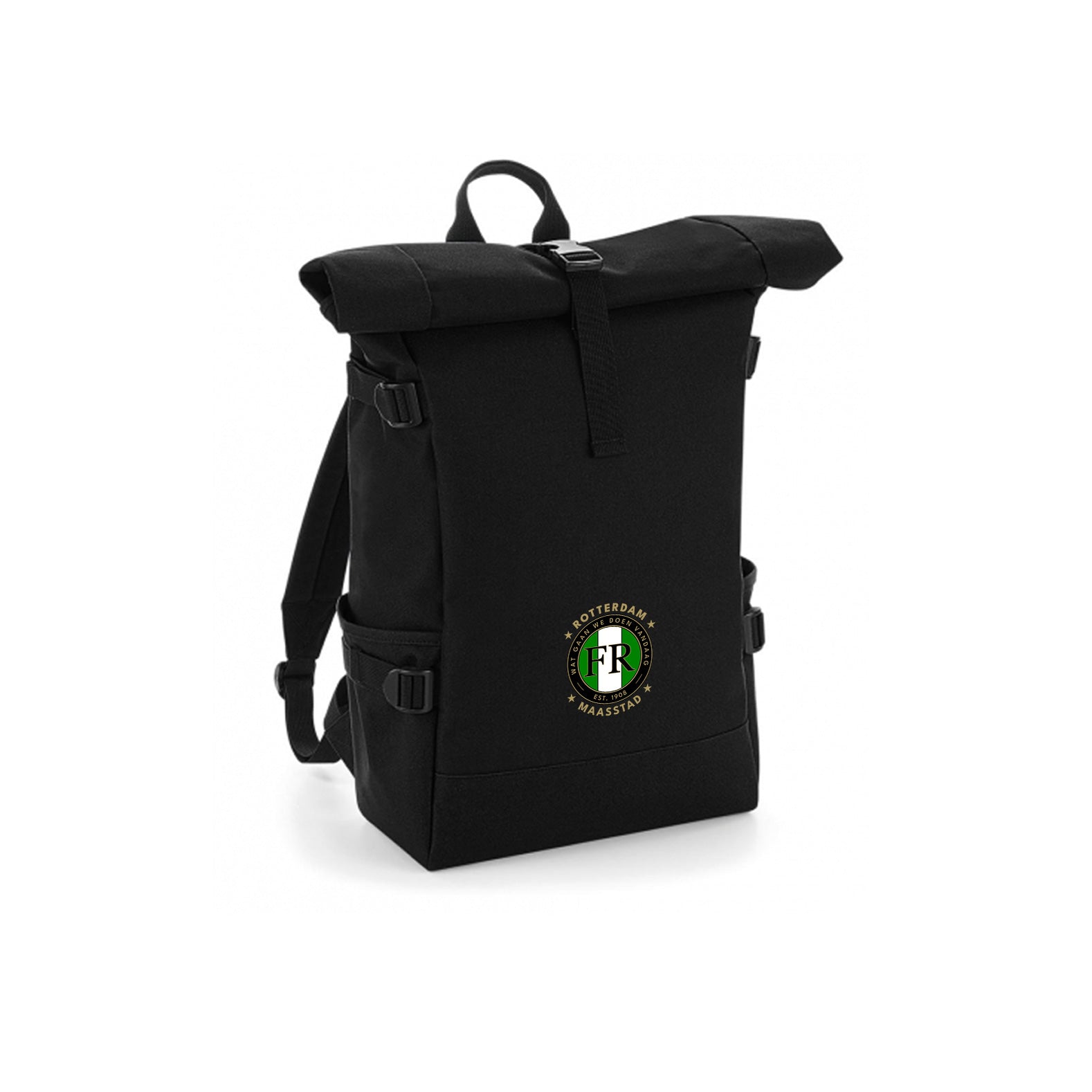 Bekijk product bij Fr-fanshop.nl — bestel vandaag nog en ontvang de Rugzak Roll Top – FR – Wat gaan we doen vandaag – logo voor snel thuis.