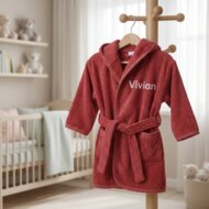 Met een schattig ontwerp en comfortabele pasvorm is deze badjas perfect voor na het badderen. De naamborduring (ca. 10 cm breed) wordt met zorg aangepast aan de lengte van de naam en het gekozen lettertype. Geschikt voor baby’s van 0-12 maanden.