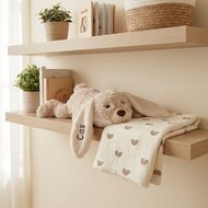 Maak het extra bijzonder! Kies ervoor om de naam van de baby op het oor te laten borduren (toeslag €9,95) in een kleur van jouw keuze en het mooie MORRIS-lettertype. De knuffel wordt liefdevol verpakt in een linnen cadeauzakje met cadeaulabel – helemaal klaar om te geven!