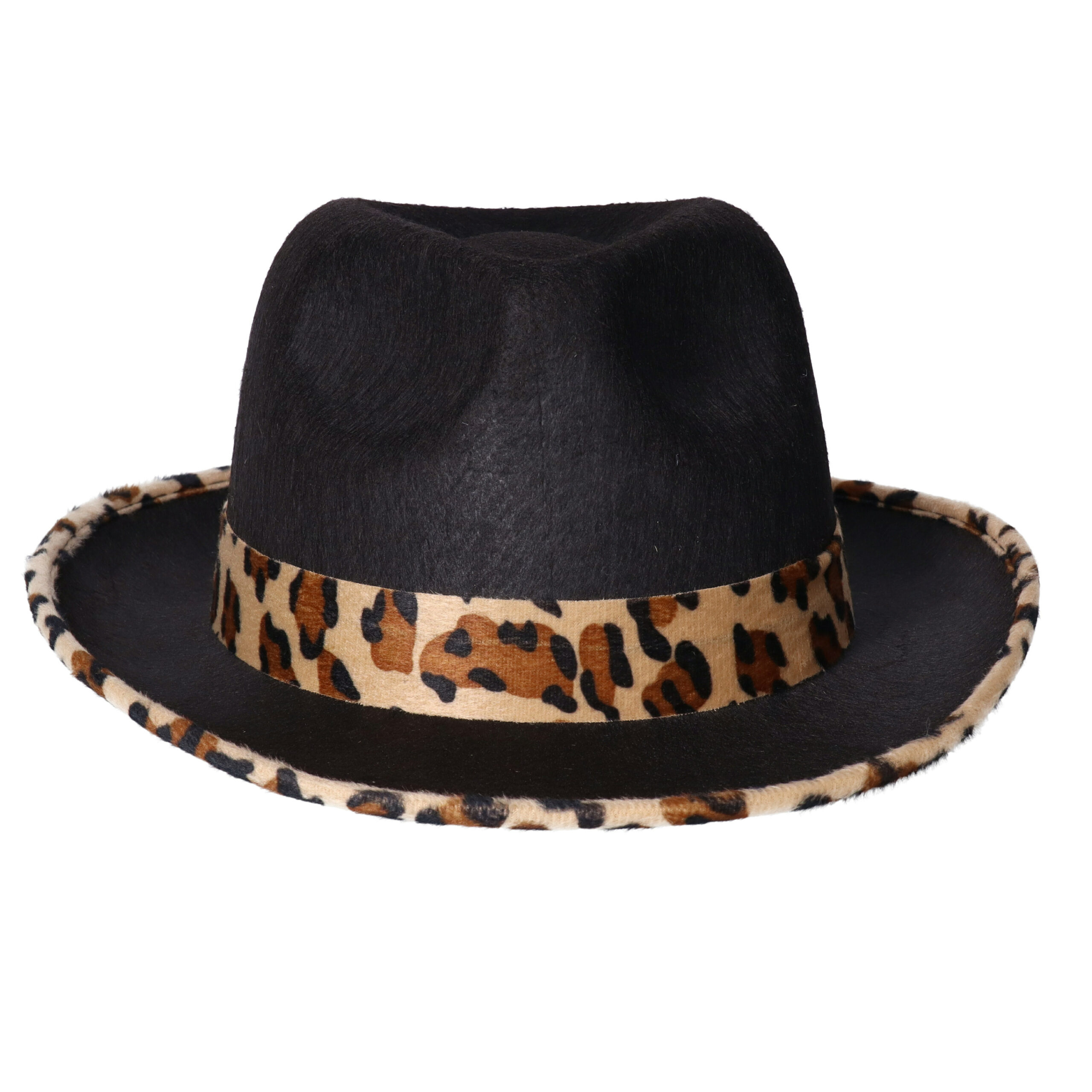 Pooier/pimp verkleed hoed – zwart – luipaard details – voor volwassenen — Funny Fashion