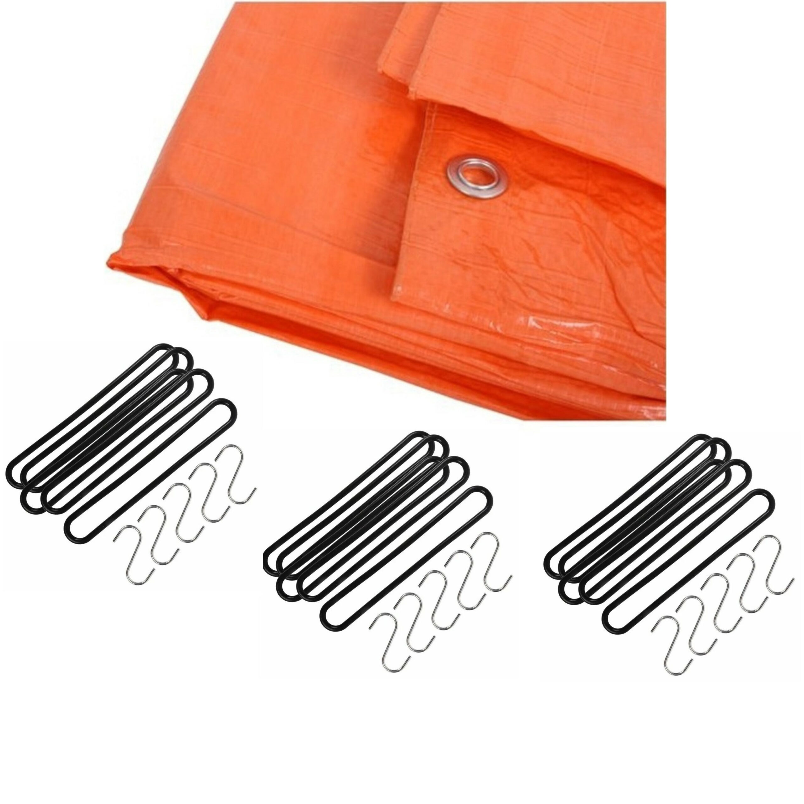 Afdekzeil / dekzeil oranje 4 x 5 meter met 15x spanrubbers en S-haken — FX Tools