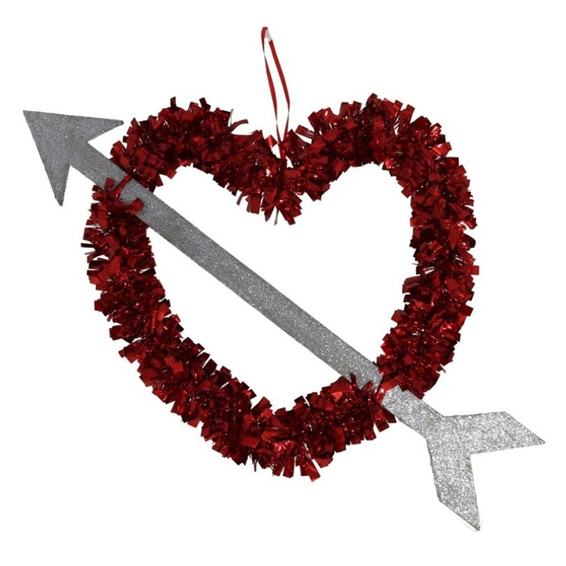 1x Rood Valentijn/bruiloft hangdecoratie hart met pijl 45 cm — Gerimport
