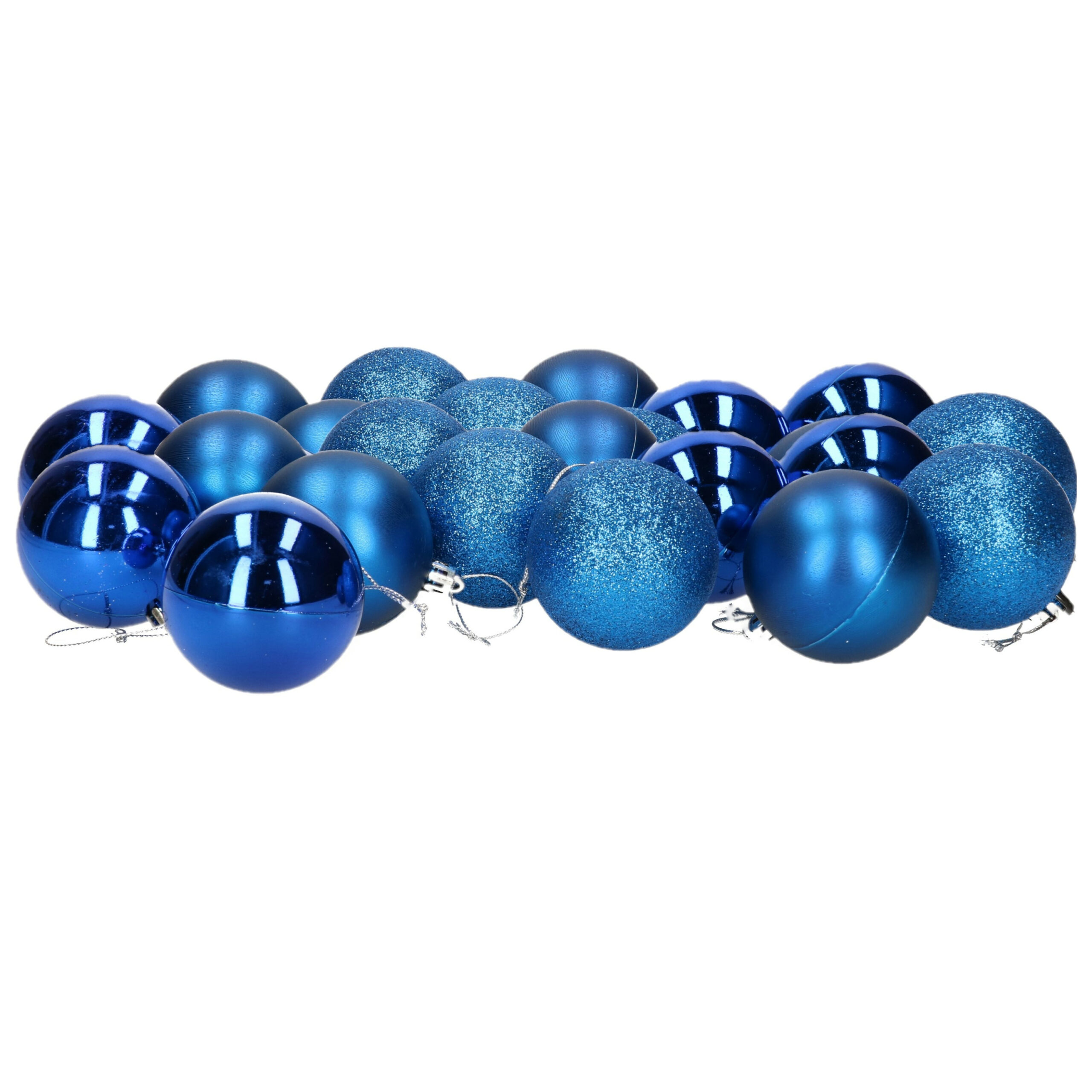 Bekijk product bij Bellatio-kerstversiering.nl — bestel vandaag nog en ontvang de 24x stuks kerstballen blauw mix van mat/glans/glitter kunststof 6 cm snel thuis.