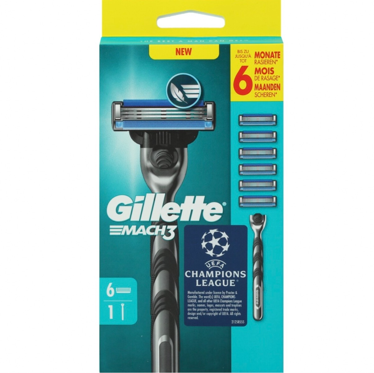 Productinformatie voor Gillette Mach3 Houder incl 6 Mesjes Nieuw van Gillette — categorie: Gezondheid en persoonlijke verzorging > Persoonlijke verzorging > Scheren en gezichtsbeharing. Prijzen en beschikbaarheid kunnen afwijken.