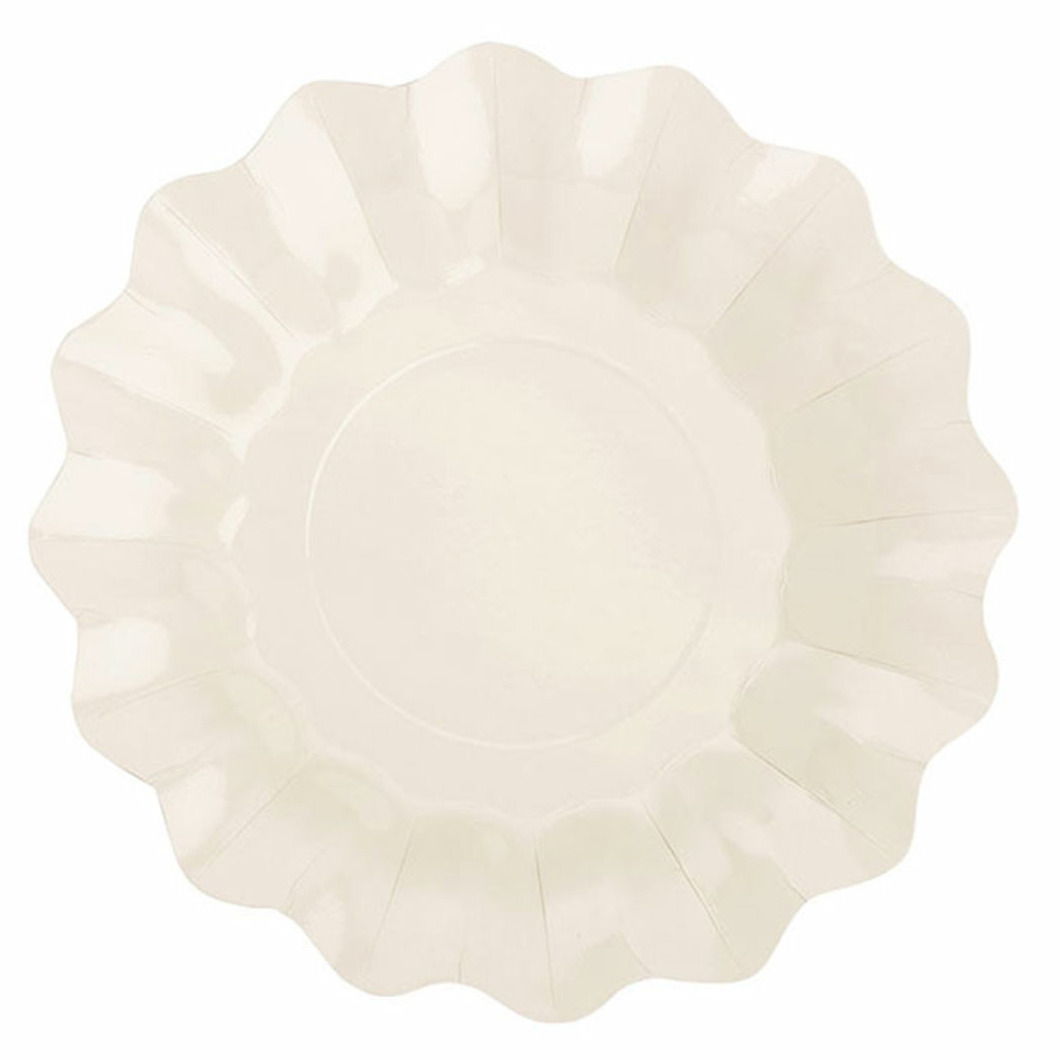 Givi Italia ivoor wit feest/verjaardag bordjes van karton, 8x stuks. Deze ivoor witte bordjes hebben een diameter van 27 cm en zijn gemaakt van stevig karton, zonder plastic film. Dit maakt deze feestbordjes een gemakkelijk alternatief voor plastic wegwerpbordjes. Maak je verjaardagsfeest, BBQ of picknick compleet met deze handige wegwerp servies/borden. Deze bordjes hebben een diameter van 27 cm en bevatten een mooie schulprand, waardoor ze uitermate geschikt zijn voor alle soorten feestelijke gelegenheden. Voor de complete feesttafel gebruik je ook de bekers en servetten uit dezelfde serie.
