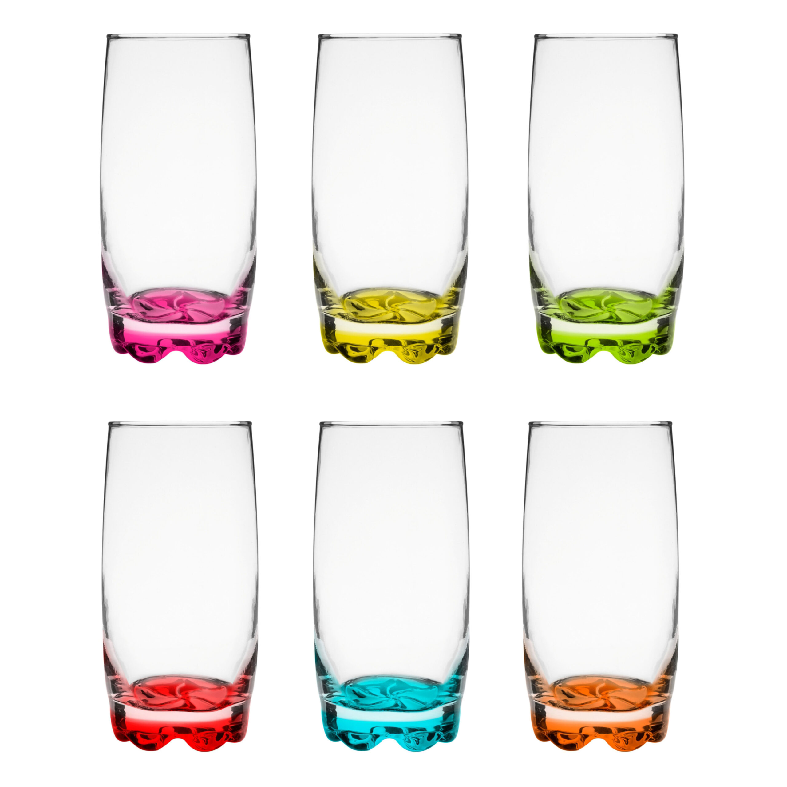 Breng kleur en stijl op tafel met deze Glasmark Tumblers longdrinkglazen. De glazen hebben een mix van gekleurde bases en zijn ideaal voor water, frisdrank of andere dranken, zowel thuis als in de bar.