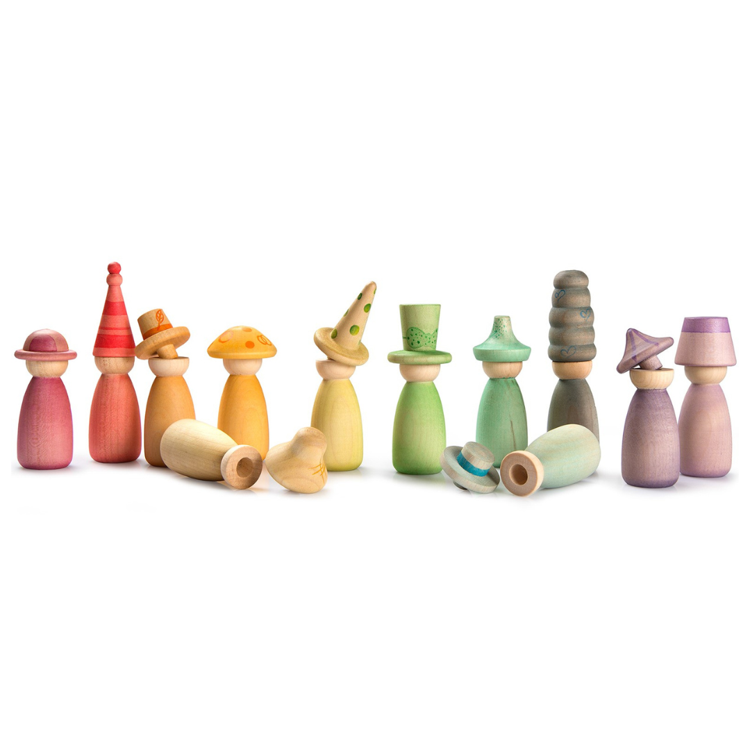 Breng kleur en plezier in het spel met de Grapat Fancy Nins! Deze set van 12 handgeschilderde houten Nins met verwisselbare hoedjes biedt eindeloze creatieve mogelijkheden voor kinderen. Perfect voor rollenspel, verhalen en motorische ontwikkeling.