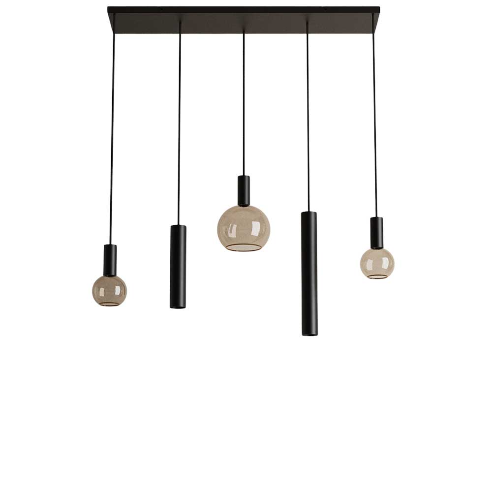 Let op: de prijs van deze hanglamp is exclusief glazen kappen, zodat je de lamp volledig naar wens kunt samenstellen. meerprijs €225