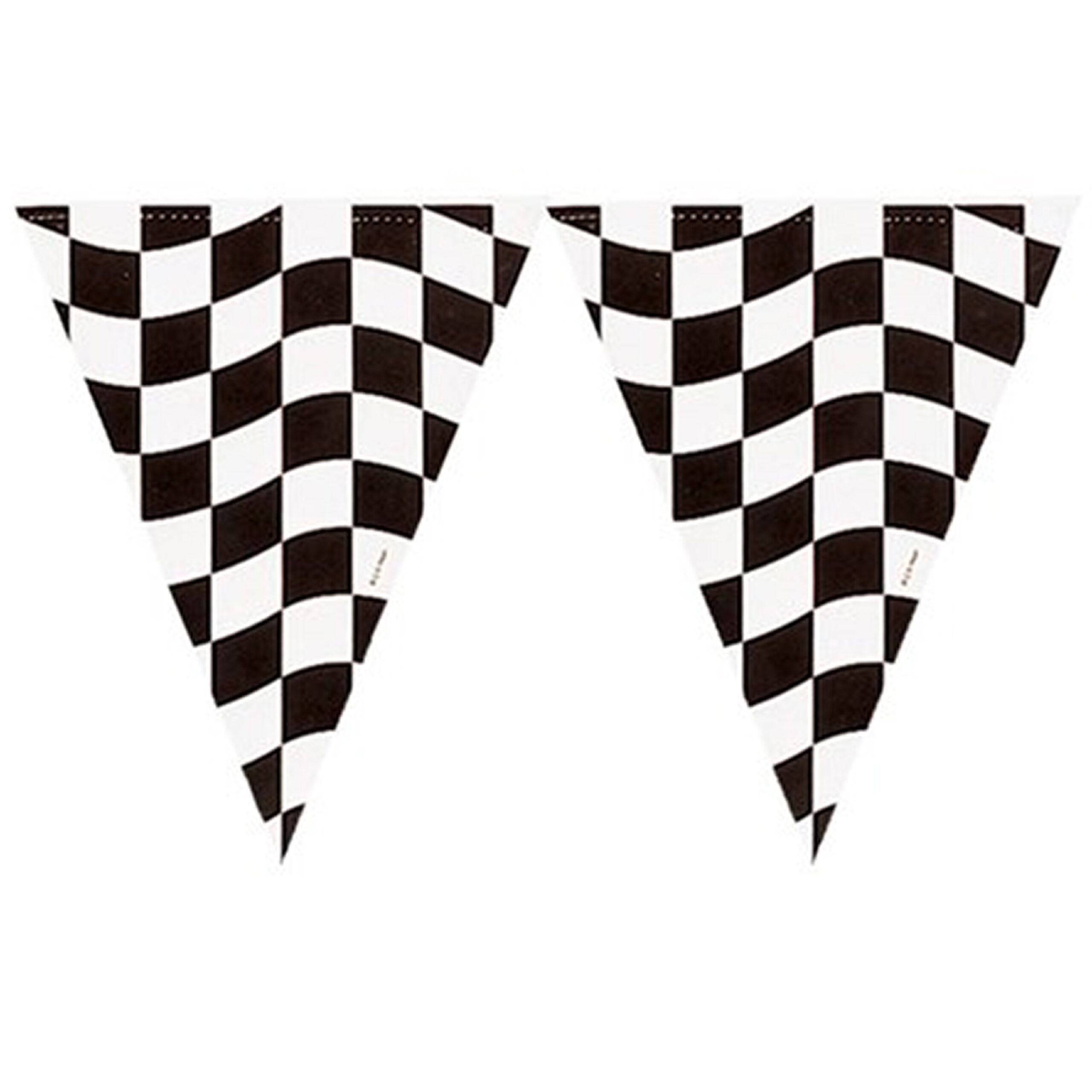 Bekijk product bij Kinderfeestjes-winkel.nl — bestel vandaag nog en ontvang de Vlaggetjes – Racing thema zwart/wit geblokt – 366 cm – plastic snel thuis.
