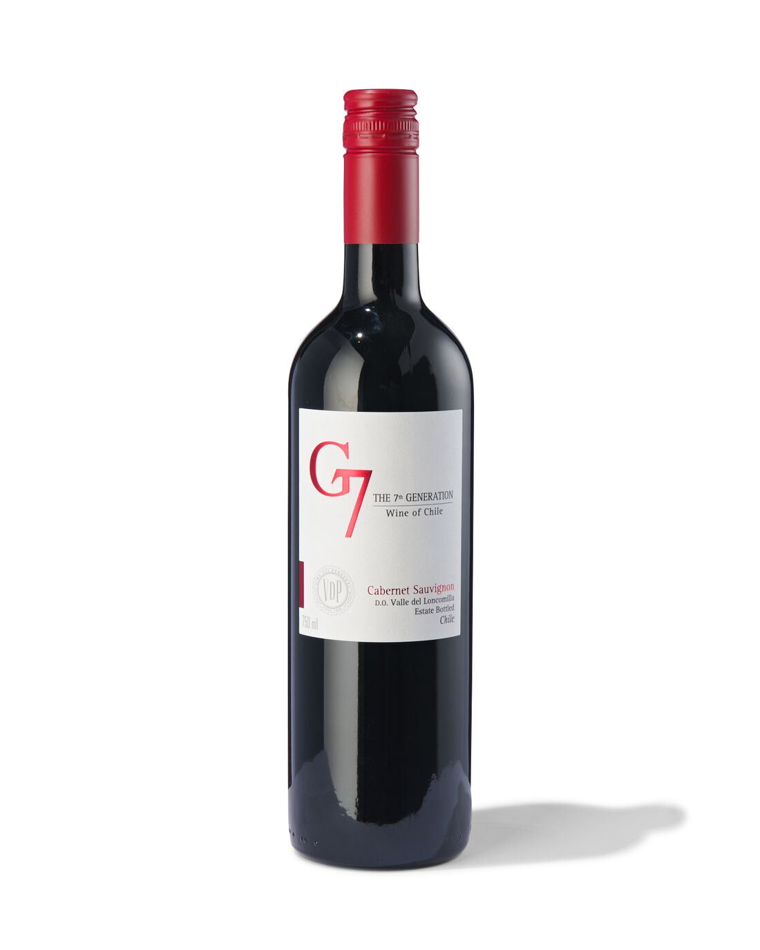 Tip van ons: laat hem even ademen voor het ultieme smaakfestijn. Daarna is het alleen nog inschenken en genieten! De naam G7 geeft eerbetoon aan de zeven generaties van de familie del Pedrogal en hun passie voor het maken van hoogwaardige kwalitatieve wijnen. De familie bouwt voort op de erfenis van Carlos Adolfo del Pedregal die zich vestigde in het hart van de Loncomilla-vallei. G7 bevat een scala aan moderne, fruitige wijnen die niet alleen goed doordrinkbaar zijn, maar tevens een echt gevoel geven met het land, Chili.De producteigenschappen: land van herkomst: Chili. wijnstreek: Loncomilla Valley DO. druivensoort: cabernet sauvignon, . smaakprofiel: krachtig. lekker bij: stoofschotels, stevige kazen en gegrild vlees. alcoholpercentage: 13. merk: G7. waarschuwing(en): Geen 18? Geen alcohol., . drinktemperatuur: tussen 15 – 16 °C. productiewijze: veganistisch, . aroma: gekonfijt fruit, bramen, chocola, vanille en vegetale hinten van groenten. artikel nummer: 17361102.